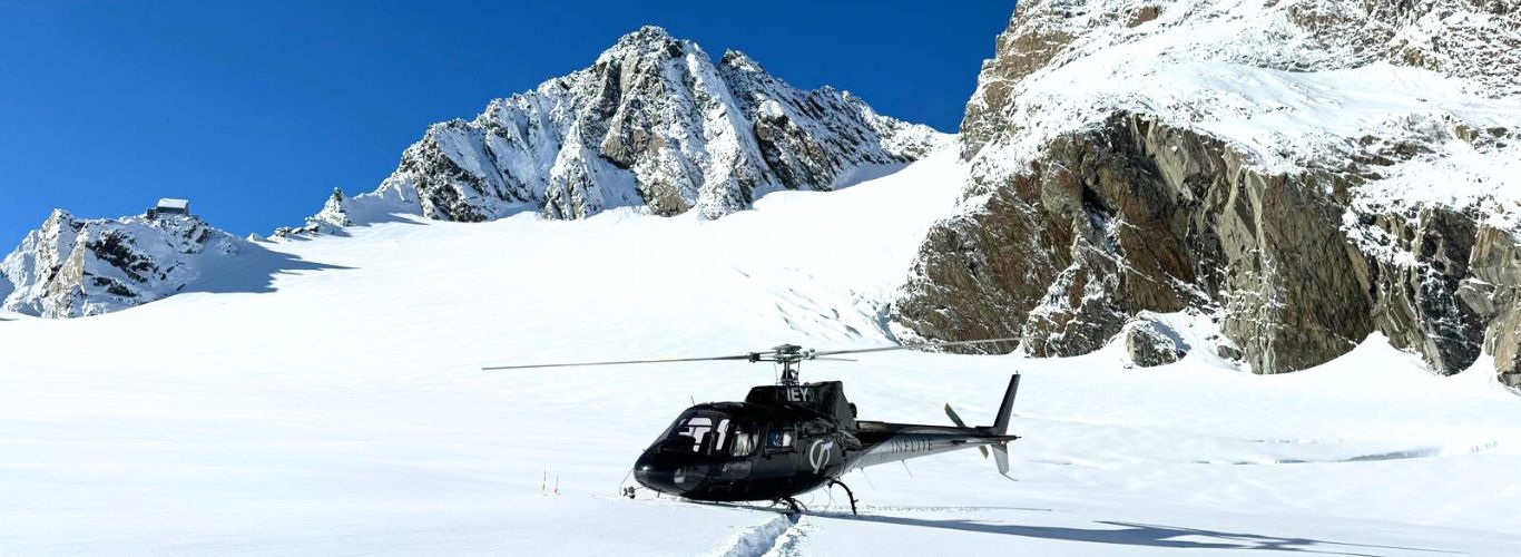 Get your cameras ready for a Helicopter flight and glacier landing experience, flying from Franz Josef Heliport across the main attractions of the Southern Alps including Franz Josef & Fox Glaciers, native rainforest, and Aoraki Mount Cook to land on New Zealand’s longest glacier, the Tasman Glacier.